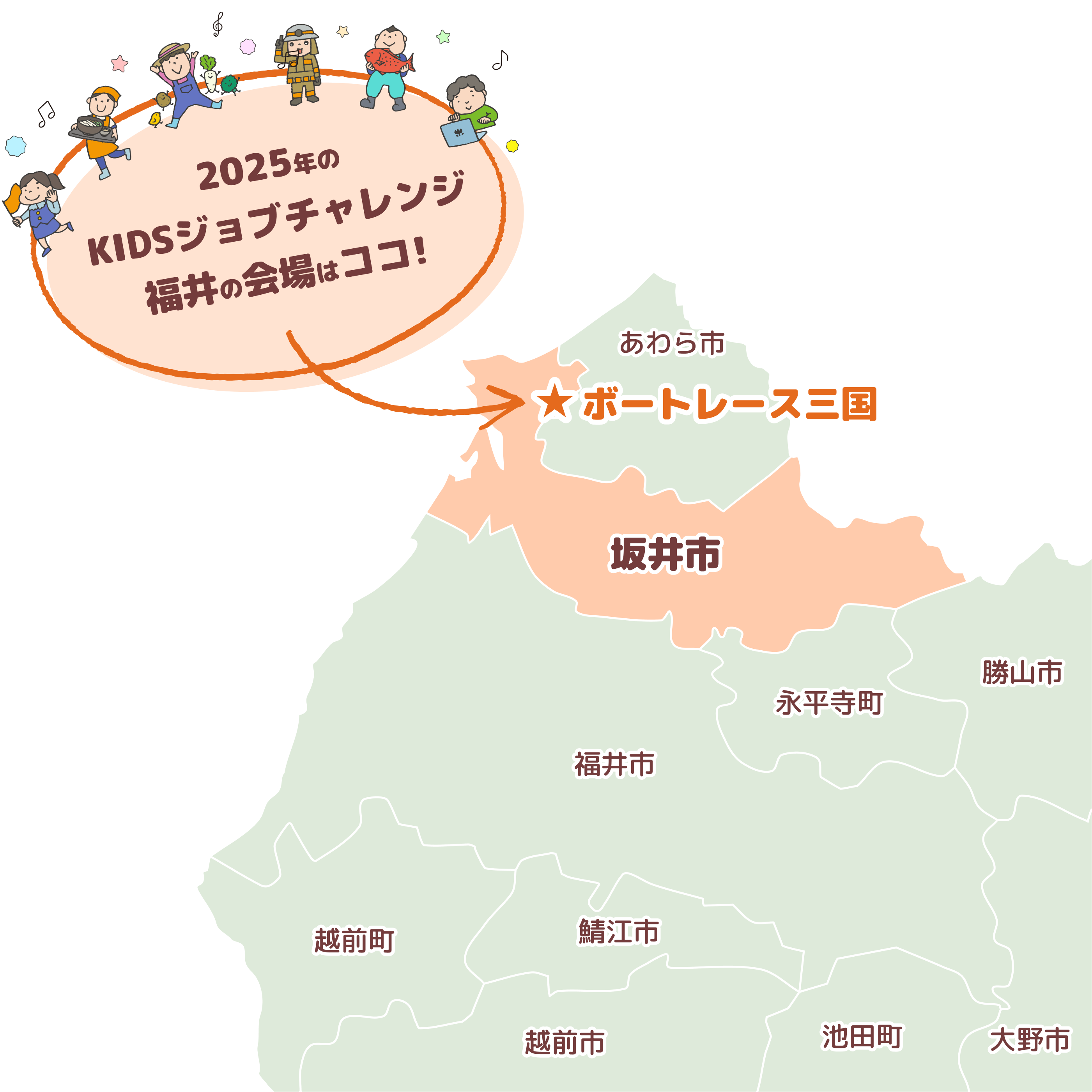 職業体験をした子どもたちには、福井県のデジタル地域通貨「ふくいはぴコイン」をプレゼント。坂井市をはじめ福井県内のふくアプリ加盟店でご利用いただけます。ふくいはぴコインについてはこちら たくさんの職業体験プログラムを用意していますので、ご家族の思い出に、お出かけしてみませんか。